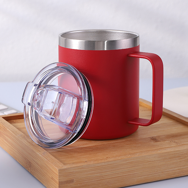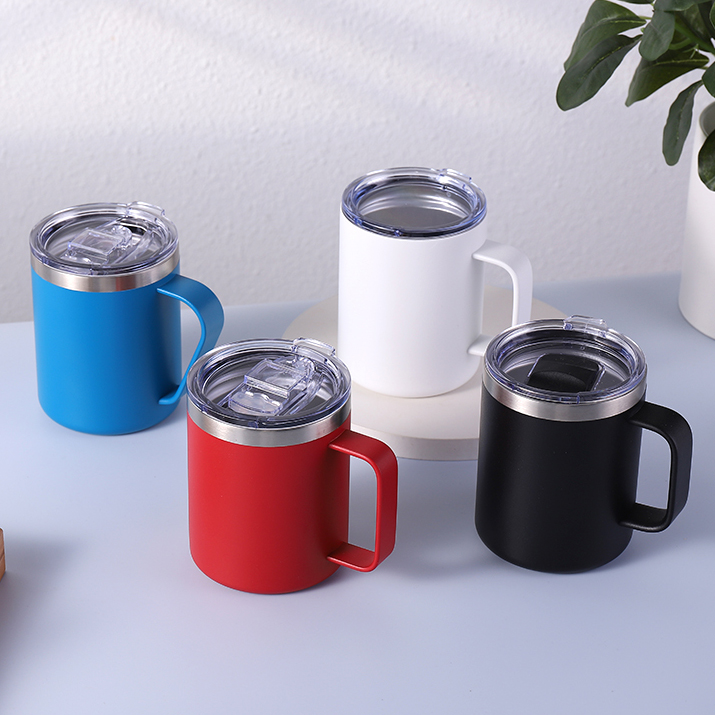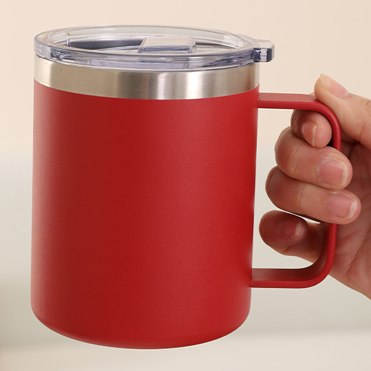 スタイリッシュなデザインのステンレス製マグカップ型ボトル。真空二重構造で保温・保冷に優れ、蓋付きで持ち運びにも便利。カラーも豊富で日常使いに最適です。