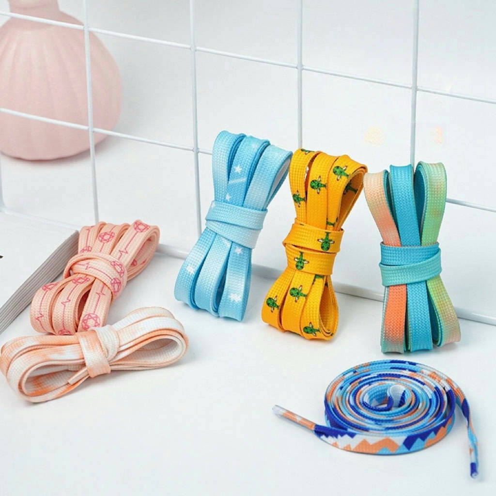 おしゃれは足元から始まります。弊社のカスタムプリント靴ひもは、個性を引き立てる多彩なデザインで、毎日のコーディネートに楽しさをプラスします。