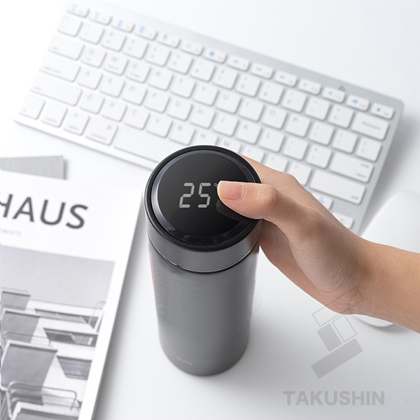 タッチセンサー式のLEDディスプレイで、飲み物の温度をひと目で確認可能。