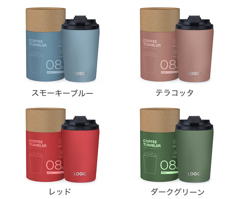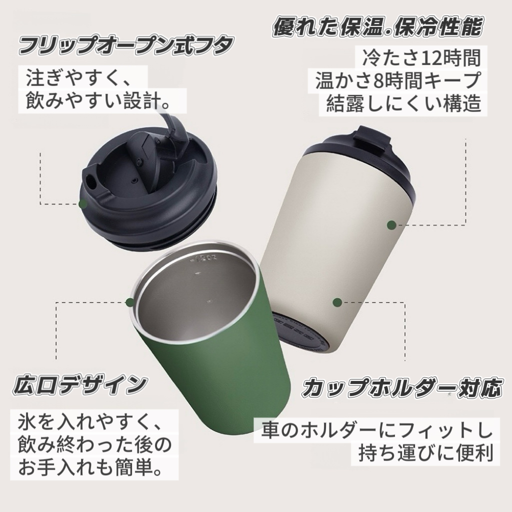 ・保温最大8時間、保冷最大12時間対応。真空二重構造により結露しにくく、オフィスでもアウトドアでも活躍。