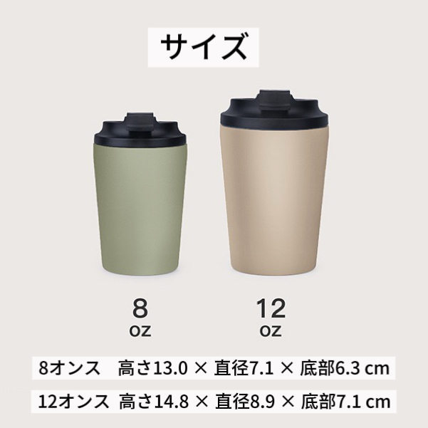 12oz(約360ml):高さ14.8cm × 直径8.9cm(底部7.1cm)