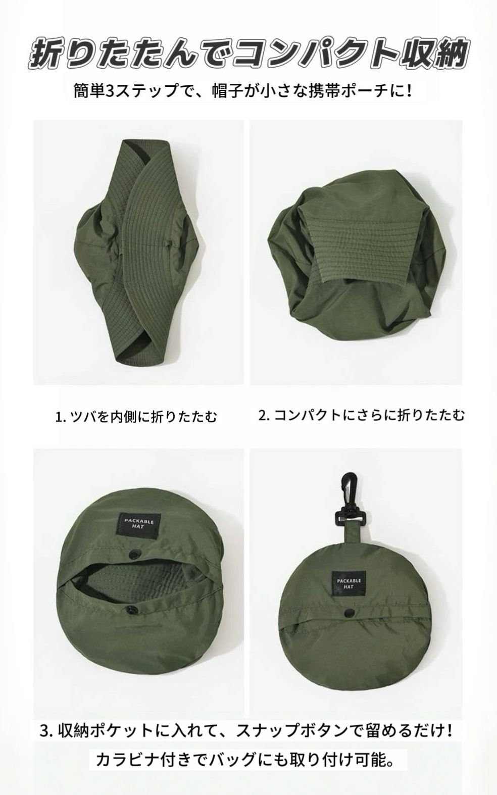 ・簡単3ステップで折りたたみ、収納ポーチに早変わり。